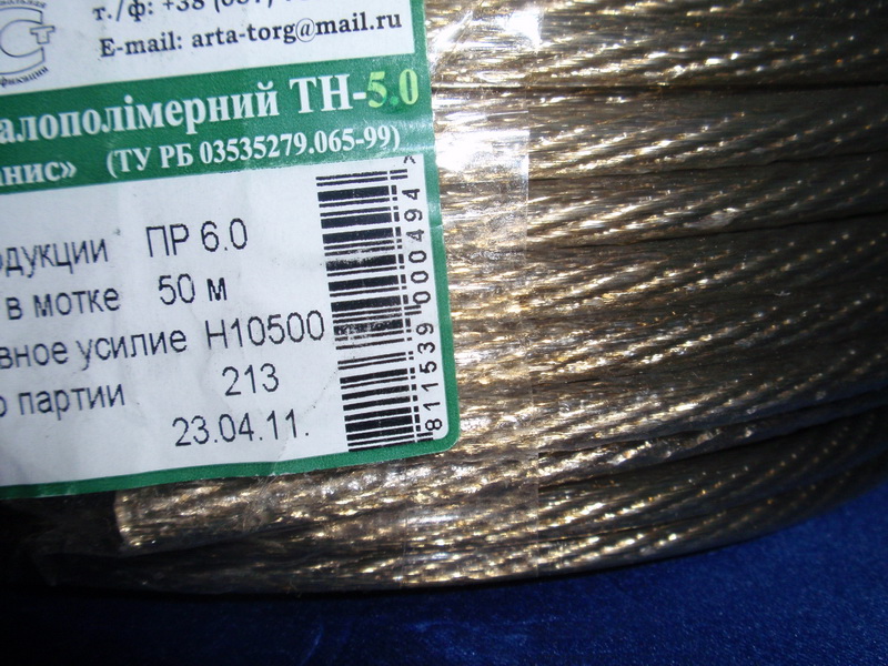 Металлополимерный трос представляет собой латунированный высокоуглеродистый металлотрос, покрытый пластикатом различных марок.