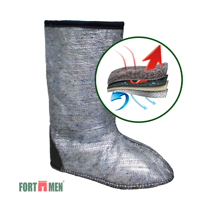 Нижняя часть сапога цельнолитая из материала ПВХ. Внутри сапог содержит 3хслойный чулок и стельку из материала ЭВА, которые сохраняют тепло и впитывают пот. Чулок легко извлекается и быстро сушится. Материал голенища - водооттталкивающая ткань OXFORD 600.