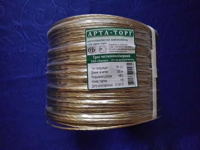 Трос металлополимерный ПР-2.0, моток 100 м, 15мот/упак