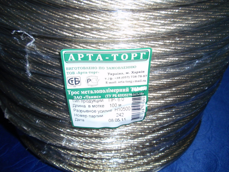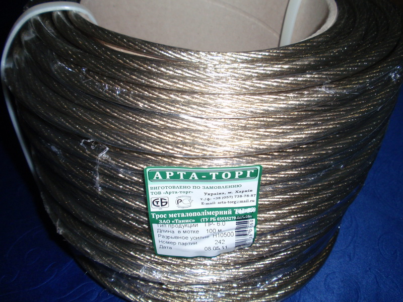 Металлополимерный трос представляет собой латунированный высокоуглеродистый металлотрос, покрытый пластикатом различных марок.