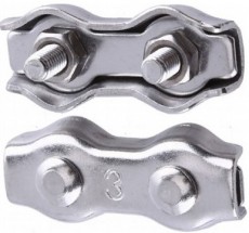Зажим Duplex для сращивания стальных тросов, канатов размером от 2 до 10 мм. Также он применяется для создания петель на концах тросов. Двойной зажим Duplex гораздо прочнее при сращивании одинарного Simplex. Независимо от типа, рекомендуется устанавливать не менее двух стальных зажимов.